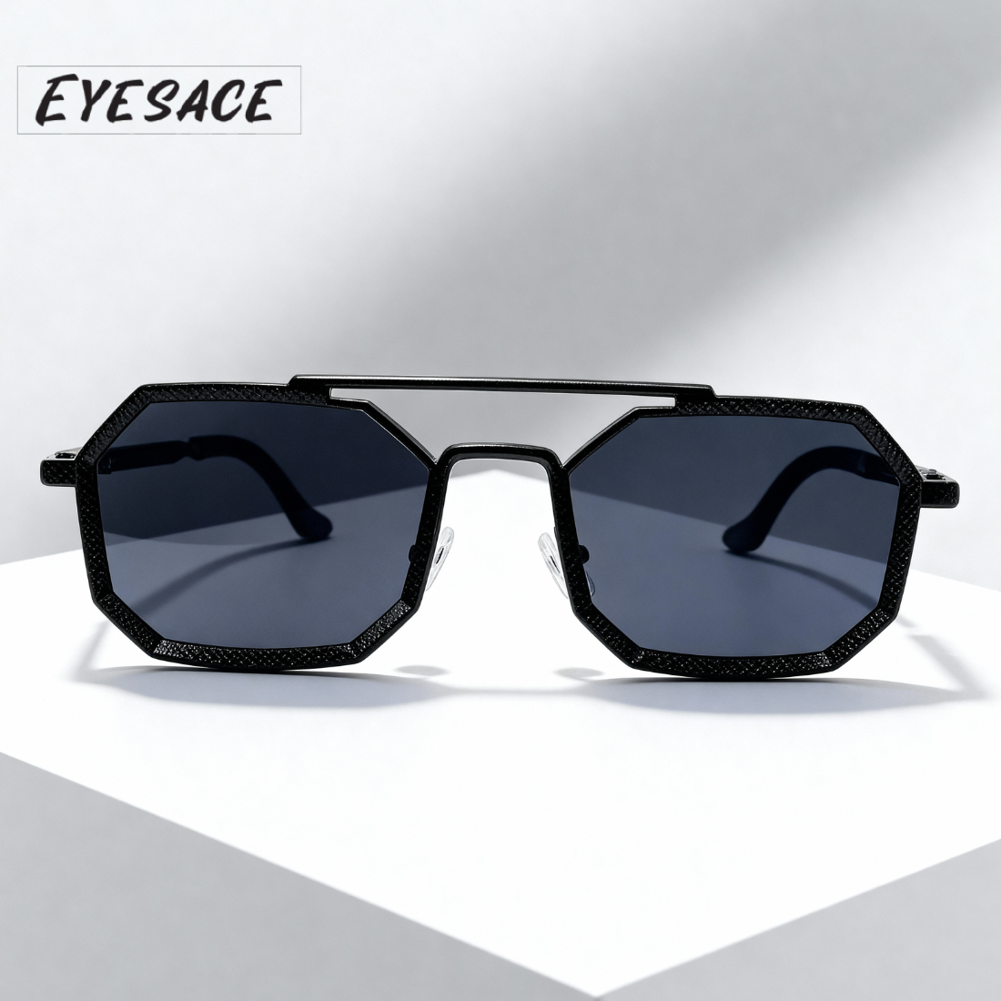 Eyesace® Commando Jet-Black Edition Octagon/Hexagon Metal Sunglasses